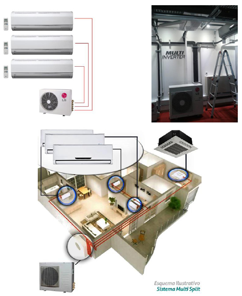 Resolve o problema de espaço, ocupando pequena área externa. Excelente para apartamentos ou locais de difícil acesso, contendo uma única condensadora que poderá alimentar vários ambientes independentes. Pode combinar diferentes modelos de evaporadora.
